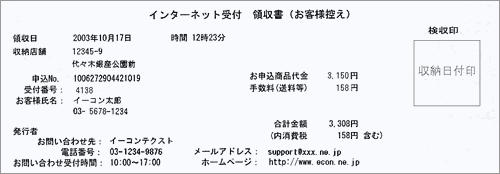 お支払い後、「インターネット受付領収書」をお渡しいたします。実際に代金をお支払いされたことを